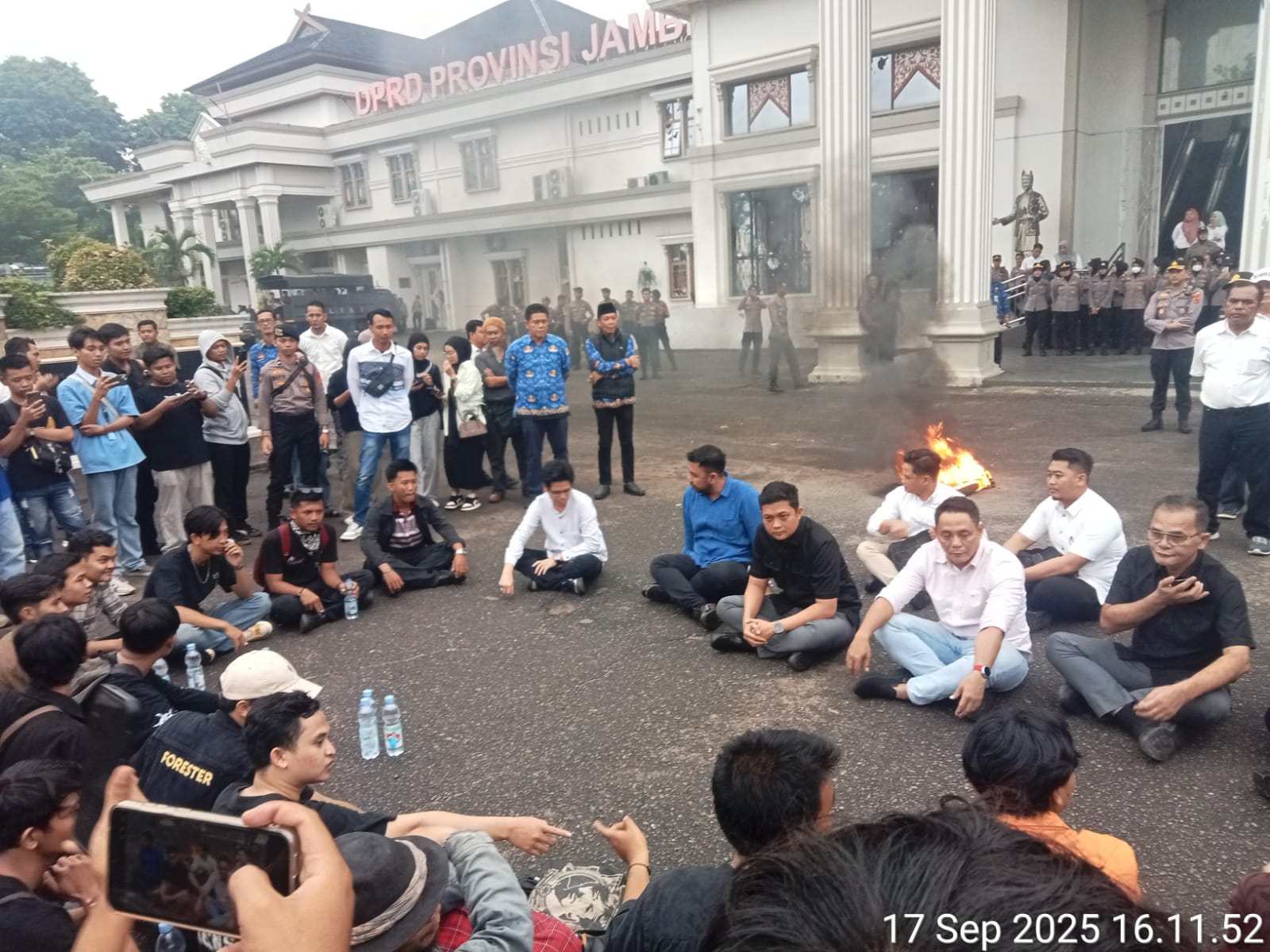 KATOE.ID – Ketua Dewan Perwakilan Rakyat Daerah (DPRD) Provinsi Jambi, Muhammad Hafiz, menerima massa aksi unjuk rasa dari Aliansi Suara Rakyat Jambi dan menyerap aspirasi mereka melalui dialog terbuka di halaman kantor DPRD, Rabu (17/09/2025).
