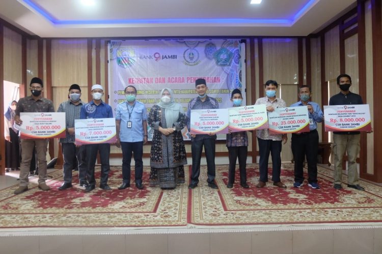KATOE.ID – Bupati Muaro Jambi Hj. Masnah Busro, SE, MTr.IP hadiri sekaligus serahkan bonus kafilah Musabaqah Tilawatil Qur’an Tahun 2022, dalam kesempatan ini juga menyerahkan bantuan biaya berobat pasien keluar daerah dan program pembangunan dari Bank Jambi di ruang aula rumah dinas Bupati, Rabu (13/04/22).